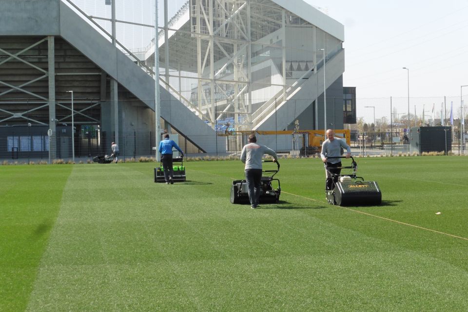 Az üzemeltetés és az őrzés mellett a másik terület, ami mindennapos gondozást igényel, a természetes környezet vagyis a parkok és természetesen a pályák. A komoly szakértelmet igénylő hibrid pályák karbantartása folyamatos, így amikor visszatér az élet a Szent Gellért Fórumba, a labadrúgókat és a közönséget is tökéletes körülmények fogadják majd. Reméljük, hamarosan!