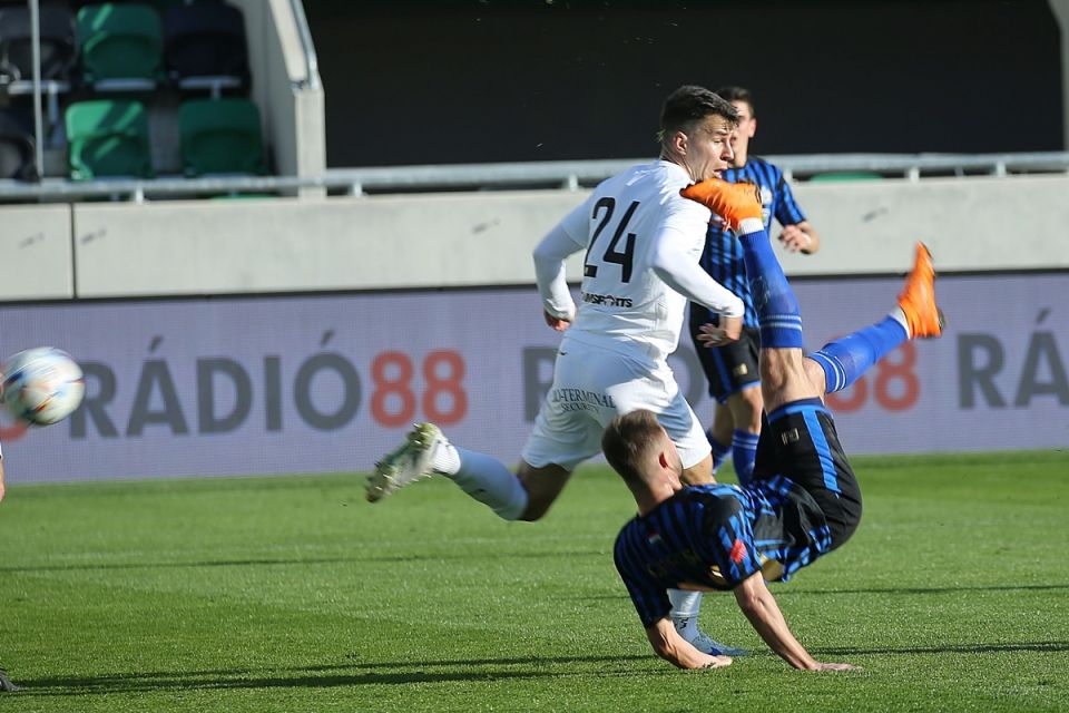 Géresi Krisztián ollózása volt a legszebb jelenet az első félidőben (fotó: Gémes Sándor)